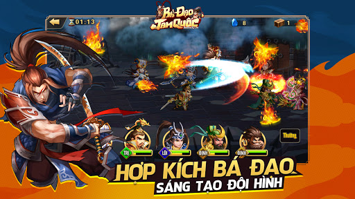 BÁ ĐẠO TAM QUỐC cái tên nói lên tất cả, vẫn là chủ đề tam quốc với những vị tướng quen thuộc như: Lữ Bố, Triệu Vân, Quan Vũ, Trương Phi, Lưu bị, Tào Tháo game rất bá đạo bởi sự kết hợp chiêu thức của các tướng tạo thành 1 combo hiệu ứng hợp kích.
