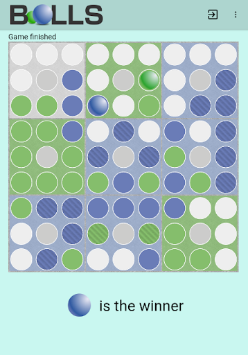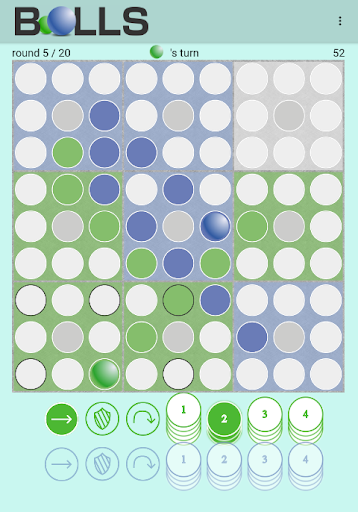 Balls is an abstract strategy game for up to 4 players. Each player moves his ball and tries to have the most quadrants at the end of the game. The player with the most quadrants wins.