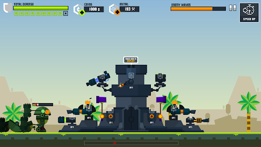 Base Defense is a tower defense game where you try to prevent enemies from destroying your base by deploying various types of weapons. These weapons are fully upgradeable with the gold coins and metal you can scrap from fallen enemies. Make sure to purchase new equipment when they are available such as gunners, sentries, triple shooters and even throwing axes! It is very fun to watch your machine minions do all the work while you plan your tactics. Go ahead and give Base Defense a try!