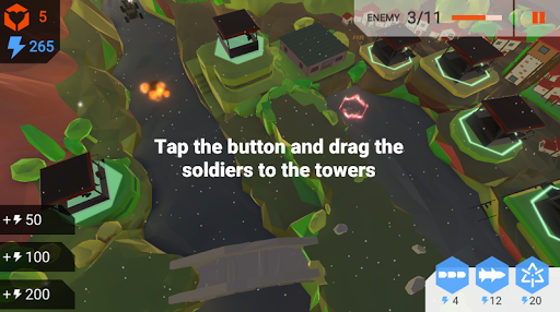 Place soldiers in the towers, develop the weapons in the soldiers’ hands.