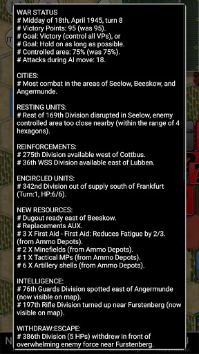Battle of Berlin 1945 is a turn based strategy game which takes place during the last months of the Second World War in Europe. From Joni Nuutinen: by a wargamer for the wargamers since 2011