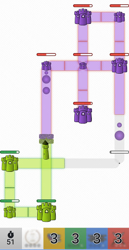 But beware, each attack consumes half the power of the attacking castle, making it more vulnerable to attack from other castles. The bigger a castle, the bigger the attack.
