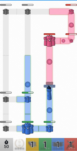 Conquer the other castles, taking care to protect your own. Your castles get bigger over time, so the more castles you have, the more power you quickly accumulate.