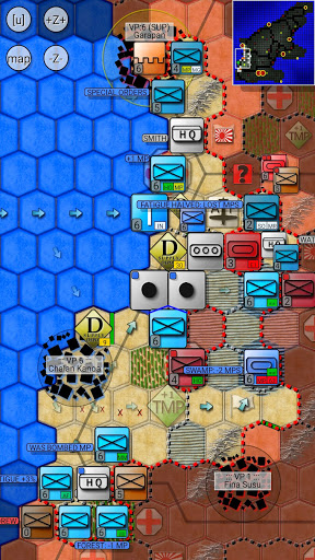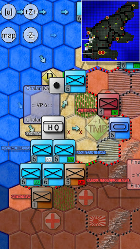 In order to be a victorious general, you must learn to coordinate your attacks in two ways. First, as adjacent units give support to an attacking unit, keep your units in groups in order to gain local superiority and win battles. Secondly, it is rarely the best idea to use brute force when it is possible to encircle the enemy and cut off its supply lines to supply cities instead.