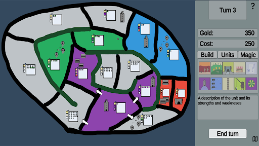 Battle Of The Great Lands is a 2d turn based strategy game with battles that happen in real time. Build buildings and use magic to take control of rival islands. Build up your armies and use tactics to maneuver your troops to victory.