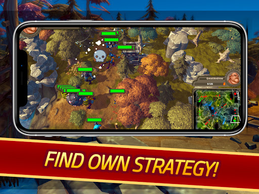 Real-time 1v1 battles against real opponent. Fight over 3 lanes to take the enemy’s temple. Complete reproductions of classic MOBA maps. Full-on 1v1, Human vs. Human battles.