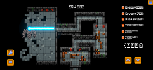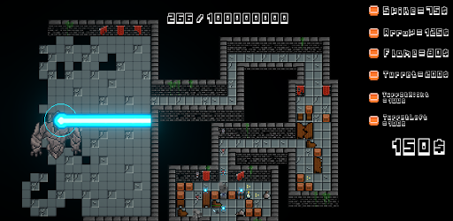 You are the roboter-boss at the end of a dungeon. A earthquake destroyed you’re home and there is big gape behind you. A falling rock destroyed you’re chip for moving sideways and there is a lot of heroes coming towards you, and if they hit you, they will slowly but surely push you off. You need to protect yourself using ur laser and different traps, in a tower defense kinda way.