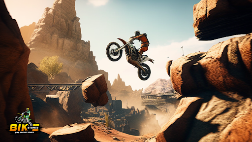 The bike stunt game comes with a thrilling bike ride experience that pits you against the slides and cliffs. Ride motorbike through