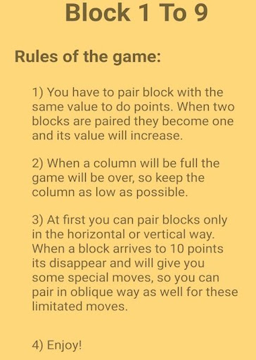 When a block reaches the value 10 this disappears and you will have 5 special moves (the next 5 moves) where you can also combine the blocks obliquely.