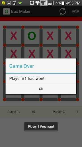 A classic box making game we used to play during school or colleges. It is a two player game played on same device; Player who completes maximum boxes at the end will win. Have fun with your friends.