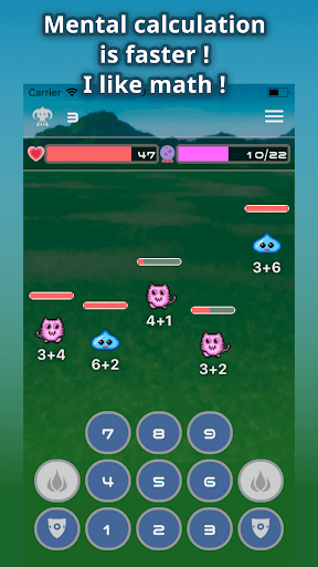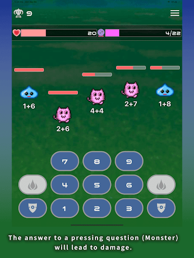 Cute dot monsters will gradually disappear, so answer the calculation questions and kill them.