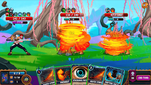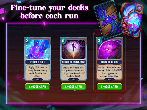 Each battle presents new challenges and opportunities. Will you play it safe and focus on defense, or take risks to surprise your enemies? With special status bars like Arcane, Frost, and Shock, and a variety of buffs and debuffs, every decision you make affects the battle. Evolve your build with every draw and become a true strategist.