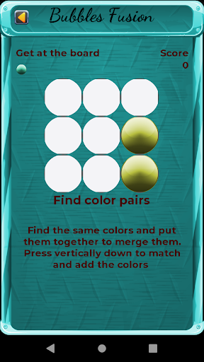 Simply swipe to move the bubbles. When two same color bubble touch, they merge into one. Reach the goal.