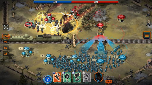 To win in RTS Bunker Wars: WW1 Strategy, you must try acting like a real general, fortifying your bases with towers, and tactically directing troops to enemy buildings. Enlarge your army, break through the opponent’s defenses, expand your territory, and strengthen the defense of your towers. In this military strategy game, you need to react quickly and make decisions in real-time.