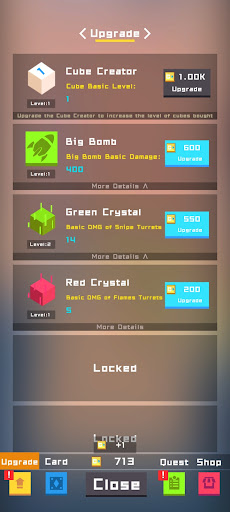 ● Collect cards and diamonds from enemy!When you defeat the king of pixesl maybe you could get some cards and diamonds. Collect them to upgrade your cube tower!