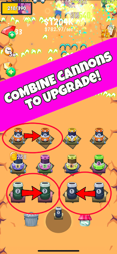 Combine cannons together to upgrade them to the next level!