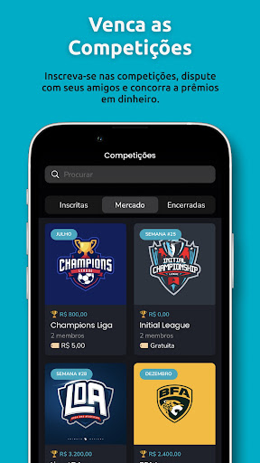 Inscreva-se nas competições, dispute com seus amigos e concorra a prêmios em dinheiro!