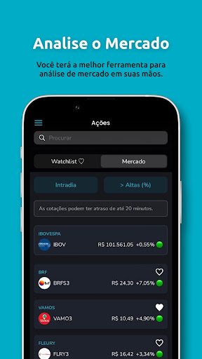Também terá a melhor ferramenta para análise de mercado em suas mãos. Conseguirá acompanhar notícias, estatísticas e informações relevantes para tomar as melhores decisões.