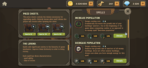 – Four spells with twelve upgrades that give you a temporary advantage in the game