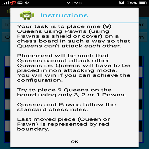 Puzzle is to place nine (9) queens on a chess board using minimal number of pawns as shields or covers.