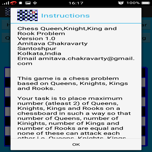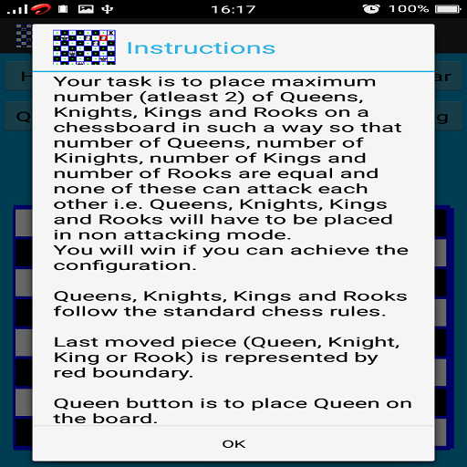 This game is a chess problem based on Queens, Knights, Kings and Rooks.