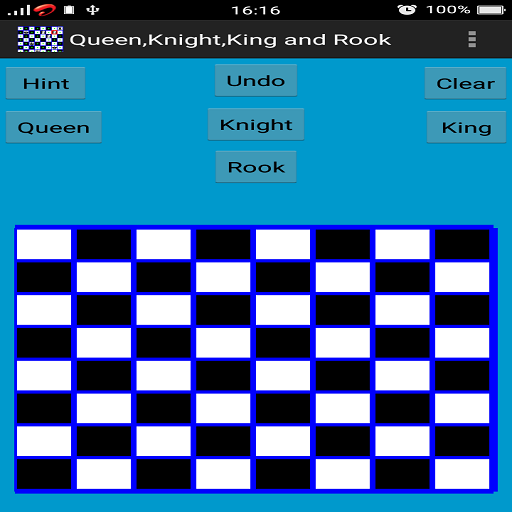 Your task is to place maximum number (atleast 2) of Queens, Knights, Kings and Rooks on a chessboard in such a way so that number of Queens, number of Kinights, number of Kings and number of Rooks are equal and none of these can attack each other i.e. Queens, Knights, Kings and Rooks will have to be placed in non attacking mode.
