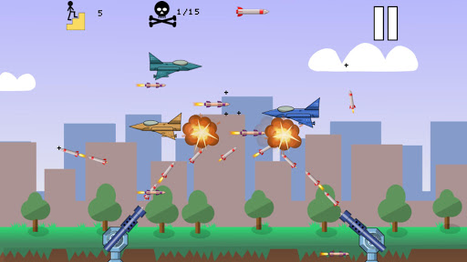 Your city is being attacked by enemy airplanes. Defend your city by shooting your rockets at the enemies. Touch any place in the sky to shoot. The explosion of the rockets can destroy many enemies.