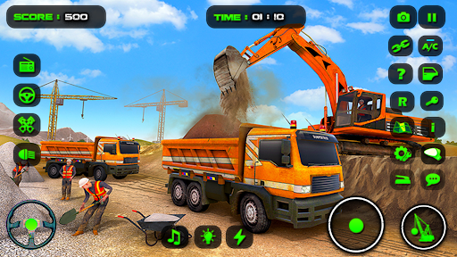 Prepare for the city building construction machines, the crane construction games missions and dumper vehicles are ready to roll up to manpower force in Grand Excavator Simulator Crane. The dumping material is transported through loader crane excavator vehicle. The containers of raw material of useful material is situated in city construction land. Make the man force work and construct the society building in the city utility construction machines simulator 3D. Grand Excavator Simulator City Crane it is.