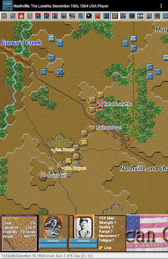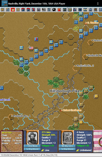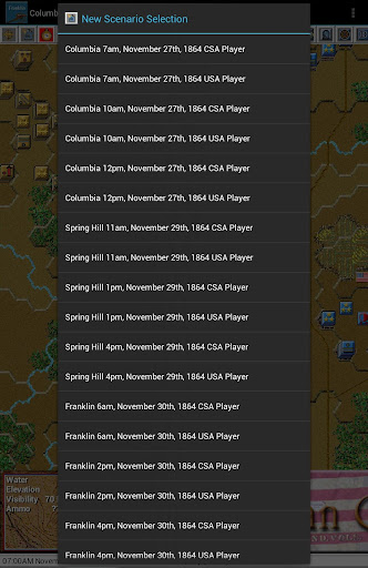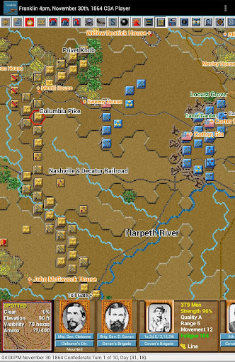 This is a paid release in the touch Civil War Battles series. This release includes 30 scenarios from the Franklin and Nashville campaign covering 15 situations where you can play as either Confederate or Union commander. You should first install and play the free Civil War Battles app to test the game engine on your device and become familiar with the interface.