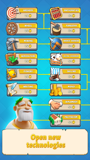 But there is no progress until you know your ultimate goal! And that goal is represented via the huge and diverse skill tree. It has many branches of development and upgrades. Each branch covers different types of technologies. From fishing and farming to ship building and siege weapons. You can unlock the secrets of economics, philosophy, and military prowess to help you on your quest to greatness.