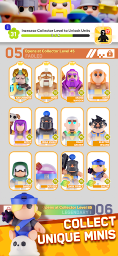 Lead your adorable army with Heroes including Barbarian King, Shield Maiden, Archer Queen, and more. Ignite the board with wizards, pierce with magic archers, or activate heavyweights like Pekka. Change the tide of battle by swapping and upgrading your Minis in between rounds. Play 1v1 or Rumble mode against 7 other players. Play casually for fun or in ranked matches to increase your League standing.