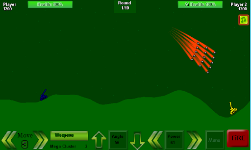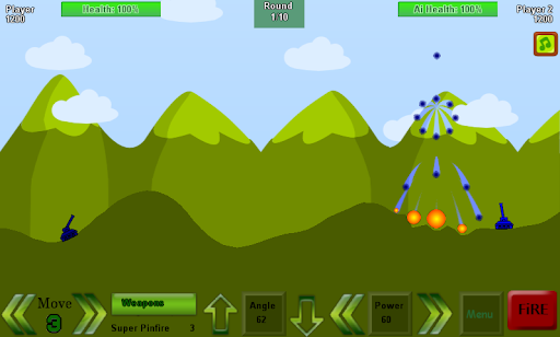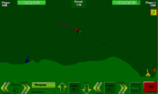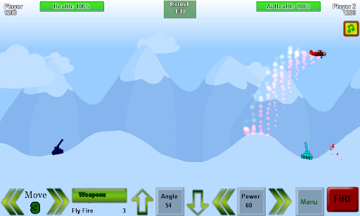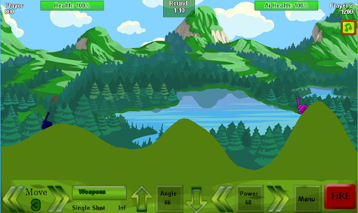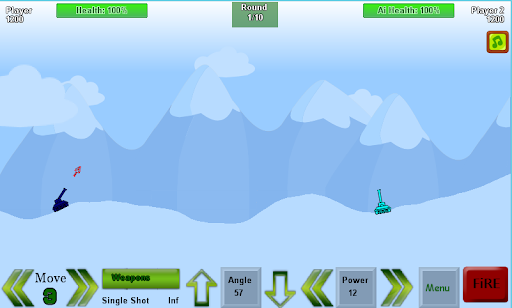 The game is turn-based, where each player controls his own artillery tank on a 2D battlefield. By rotating the tank’s turret, selecting the correct force and weapon your goal is to damage your enemies until they run out of health and die. However beware, as the weapons may be used in many ways to create many interesting scenarios and only your planning and skill will be able to grant you victory.