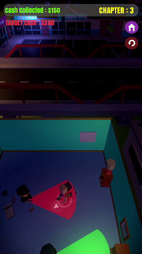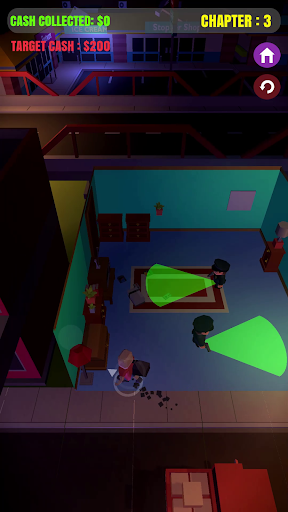 Sneak past the guards moving with torches. Collect Money to reach every mission’s target. Be smart and dont get caught. Just One Finger Control and your alert brain.