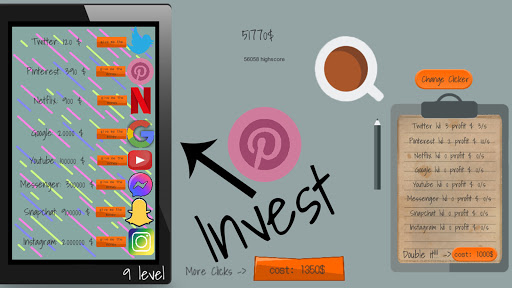 Welcome to “Clickvestor”, in this game you’re a CEO of your own company, your objective is to buy out other big company products.