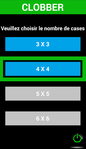 Clobber is a strategy game derived from a two-player board game. You play against the Mobile, you have the black stones and the Mobile the white stones.The game consists on choosing a black stone and try to eleminate a white stone by an adjacent move either vertically or horizontally. You start the game and the player who is unable to move their stone loses the game.
