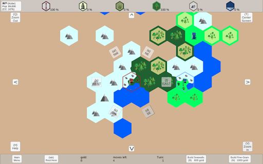 Fast-paced grand strategy game with fractal zoom (hexagonal rosette tiling).