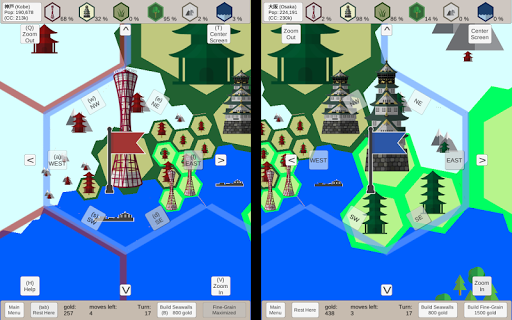 Kobe and Osaka compete to build great cosmopolitan centers as Japan experiences rapid urbanization. Play again and again to discover Himeji and other historic cities.