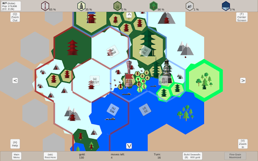 Fast-paced grand strategy game with fractal zoom (hexagonal rosette tiling).