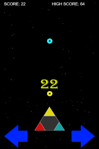 Controle sua nave e acerte as bolinhas nas cores certas… e vá pontuando, errou a cor, começa de novo…