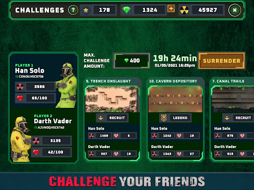 • Participate in daily strategy war challenges and win against opponents