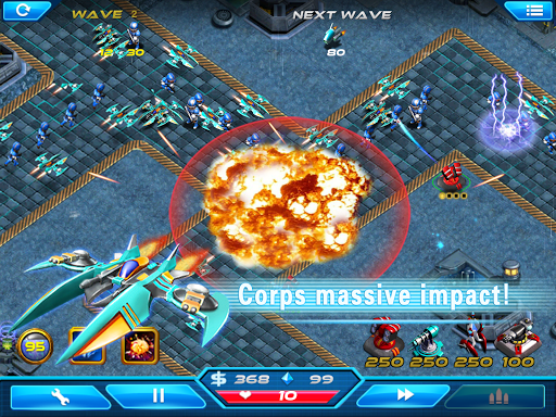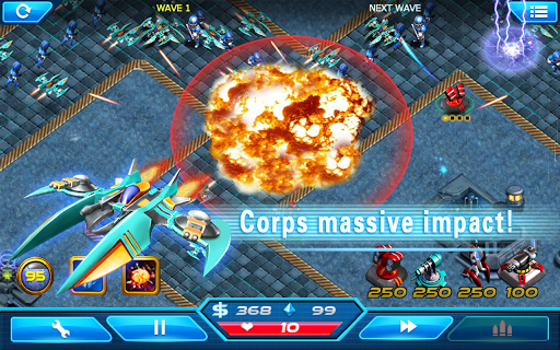 Corps Defense is an epic tower defense game. Build powerful defending towers such as Gatling, Heavy Gun, Energy Cannon and Tesla to guard your base. In the battle, you will face the Marines, Goliath, Tank, Wraith Plane and the even great Battle Cruisers.