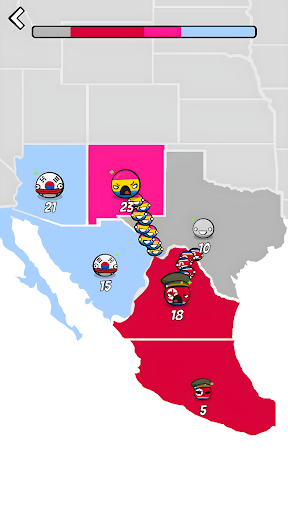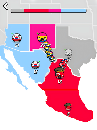 The game is really simple to play, but hard to master. First of all, you have to wait to gather your army. Once your military force is big enough, you simply have to tap and drag from your base to another, and the giant Country Balls assault will begin. If you have more soldiers than your enemy, you will be able to defeat and take over the enemy state. The captured city will change its color to yours. And now you can select your new target and strike your foes! The battle has only begun! Show your logic and become the perfect leader. Use the best strategy to win the war!