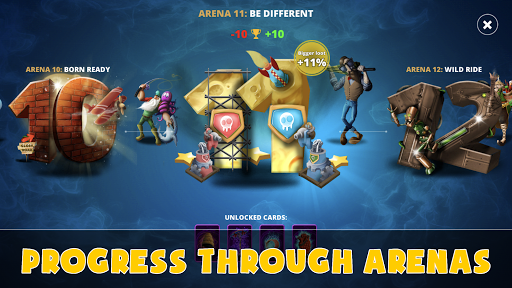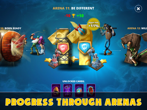 Collect and upgrade cards to reach legendary levels of your MOBA heroes’ armor, speed, and damage. Put on a deadly battler soda can ring (what?!) while a chicken breast armor (what, what?!) gives you the best defense in this PvP RPG battler.