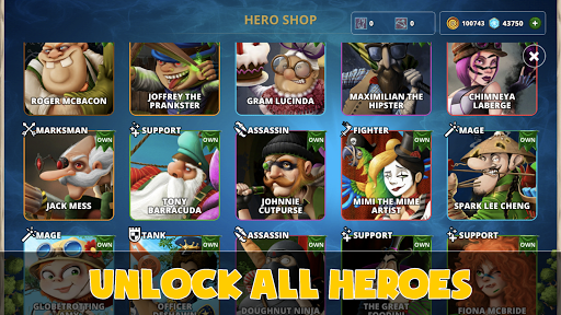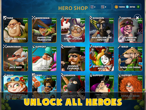 Collect hilarious everyday MOBA (multiplayer online battle arena) heroes: an angry bingo champion granny mage who bakes a killer cake, a warm-hearted math professor turned butcher skilled in close combat battle in the battle arena, a grumpy old-timer marksman in his invention – a speeding wheelchair equipped with lots of guns, and others.