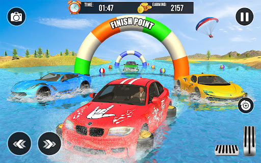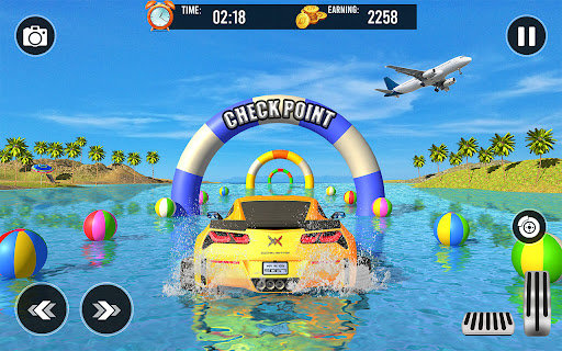 The best water surfing driver drives a super car on water roads or tracks and gives you the Water surfer car floating experience and shows you the car surfer racing stunts in this water park roller coaster slide games. The car float in the water during the water slide race with other different cars. The water sports car driver gives you the real car racing experience on the water surface tracks. The water sports car float on the water slide in this thrilling uphill rush water slides car racing games. The mini water car stunt has two different modes that are beach environment and water park theme with eight to ten different cars.