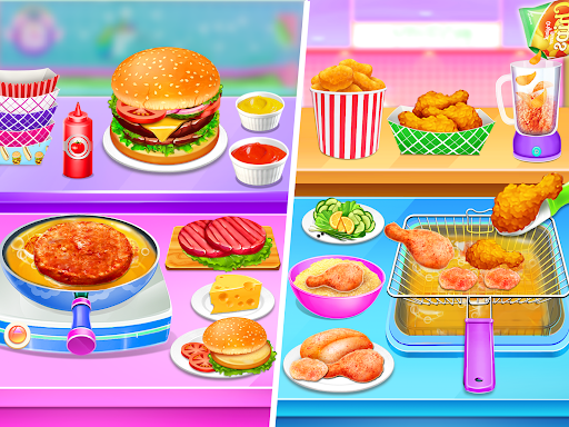 Follow the orders, get it right, and enjoy fast food games and pizza games. Try another burger maker kitchen cooking show your skills and sell the best food in the most popular cooking game for girls. Subway sandwich maker restaurant game is also very exciting to enjoy this street food court. Kitchen chef, make magical stuffing if you want to get the sweet smile of customers. Step into the shop of a fried chicken maker. To make the crispiest snacks and please everyone and bake a cake in cake games. Be the food chef making expert French fries and get lots of pleasure. Baking club sandwich maker game to keep you busy for hours cooking delicious sandwiches.