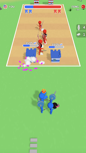 Collect bricks to strengthen your towers, collect warriors to defense your tower and destroy the enemy’s tower.