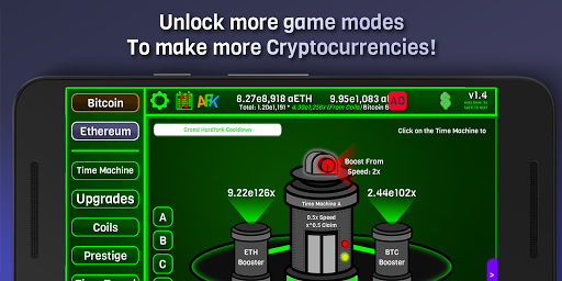 Make as much fake Ethereum and Bitcoin as possible! Buy tons of upgrades, prestige, and unlock many features in CryptoClickers!