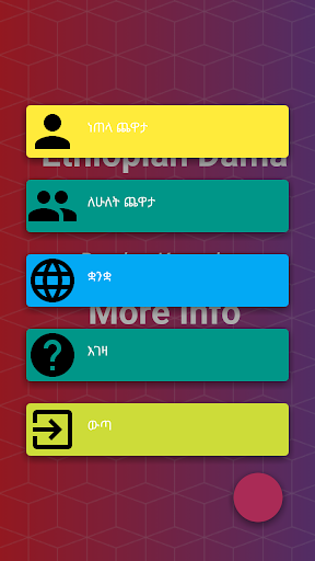 Dama is a simple and enjoyable Ethiopian game which is usually played on a piece of paper and this app is automation of the game. It have multiplayer mode in which you play like the traditional one with your friend, but if you are alone you can play with the mobile or AI. It also have Amharic and Oromiffa language support besides English. If you want to know how to play the game press the help button in the menu, it have graphical images and text’s that shows you how to play. There are two teams in this game the red and the blue, the blue team always starts the game. If you are playing with the AI/Mobile your team color is blue, hence the first turn is your’s, and also you can beat the easy and medium levels but the hard level is unbeatable, if you beat it please comment it right here, thank you for reading. ENJOY THE GAME!! thank’s for reading 🙂