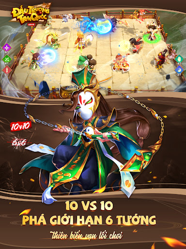 – Hầu hết các tựa Game chiến thuật trên thị trường hiện nay chỉ có tối đa đội hình 6vs6 thì Đấu Trường Tam Quốc có lối chơi cờ nhân phẩm 10vs10 vô cùng máu lửa.
